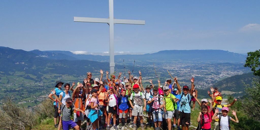Les classes de CE1/CE2 et CM1/CM2 terminent l’année scolaire par une belle randonnée en montagne qui a démarré dans les vignes de Chignin, une longue montée par un sentier soutenu jusqu’au Trou de Chignin et le point culminant la croix de Torméry où l’on domine toute la cluse de Chambéry, Chambéry et au loin le lac du Bourget. Les enfants ont pu découvrir, le lac St André et surtout leur village de Myans.Toute la difficulté était de retrouver leur école si petite vue d’en haut. Après un bon pique-nique dans les prés, le groupe a marché jusqu’au lac de La Thuile découvert au-dessus de grands prés. Puis après une pause au bord du lac où les enfants ont pu se tremper les pieds, les élèves de Myans sont passés dire bonjour aux élèves de l’école de La Thuile. La cour de leur petite école n’avait jamais connu autant d’enfants! A 15h30, le car est venu nous chercher pour le retour à Myans avec des jambes bien fatiguées…