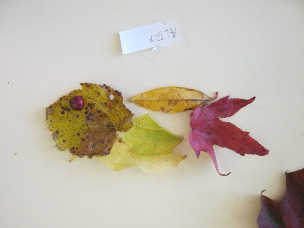 Nous avons collecté des feuilles, baies, tiges, herbes, autour de l’école, puis nous les avons assemblées, seul ou à plusieurs.