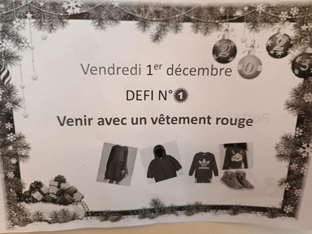 Vendredi 1er décembre. Défi 1 : Porter un vêtement rouge