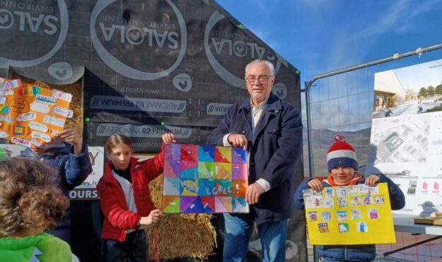 Mardi 11 avril : Pose de la 1ère botte de paille