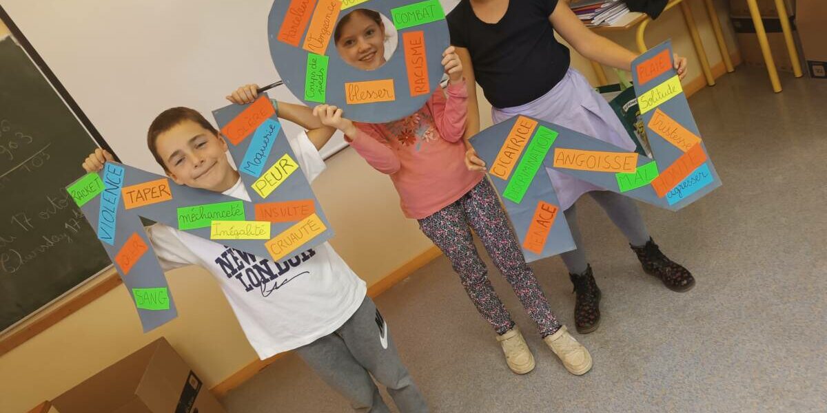 Ils ont pu définir les différents types de harcèlement et créer une production collective, ensemble, qui est affichée dans le hall de l’école.