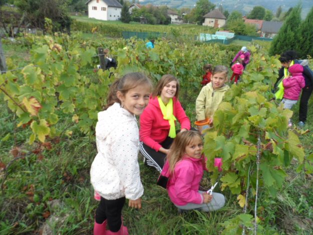 Jeudi 6 octobre nous sommes allés chez Margaux pour vendanger. Nous sommes partis avec la classe de PS/MS. Nous avons pris le petit chemin sous les arbres derrière la ferme pour éviter la route. Nous avions tous un petit seau et des ciseaux pour récolter le raisin le long de 3 treilles. Quand le seau…