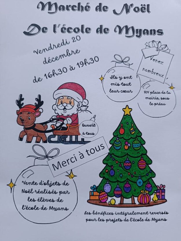 Au profit des projets de l’école. Il y aura également une vente de gâteaux réalisées par l’association « Les écoliers de Myans » Dites-le autour de vous !