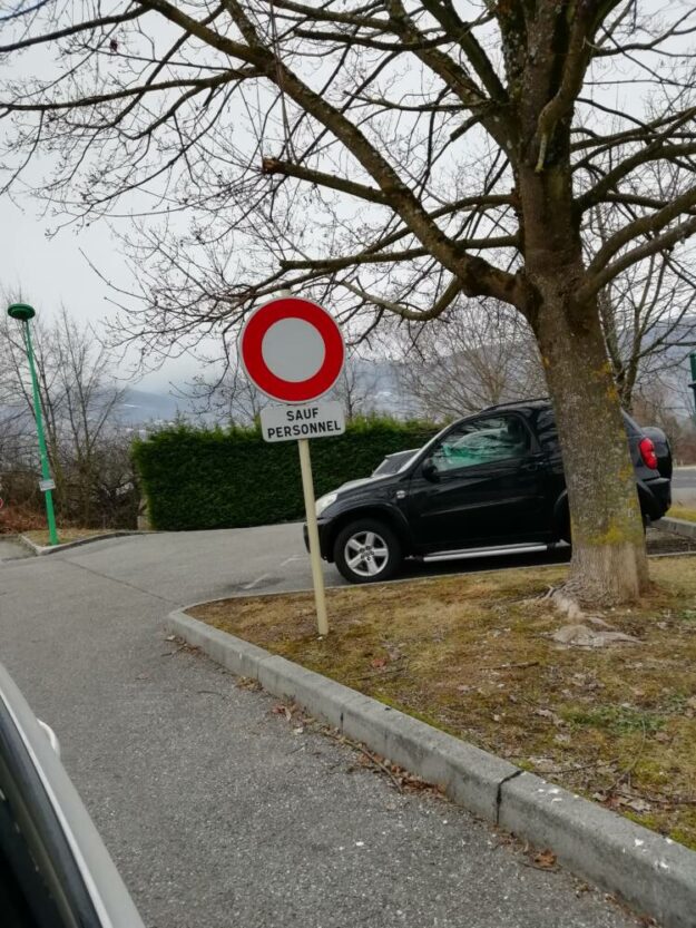 Ce panneau signifie….. (une seule réponse valable) 1. Je peux garer mon véhicule personnel 2. Je peux faire une dépôt minute pour déposer ou récupérer mes enfants 3. Ce parking est réservé aux employés de l’école 4. Ce parking est réservé au Père Sonnel